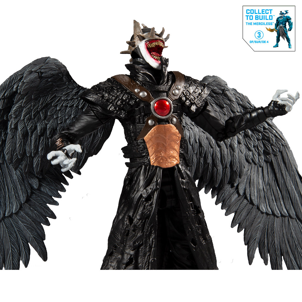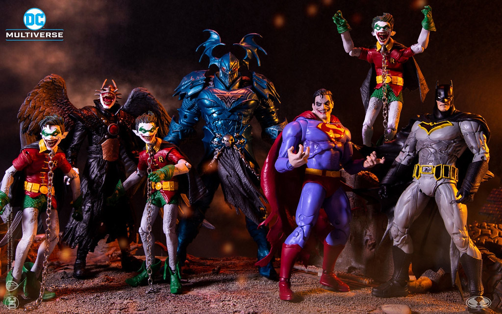 ในฟิกเกอร์ชุดนี้จะมีออกมาวางจำหน่ายด้วยกันหลัก ๆ อยู่ 4 แบบ ได้แก่ Batman, Superman (เวอร์ชั่นติดเชื้อ), Batman Who Laugh (เวอร์ชั่น Sky Tyrant Wings) และ Robin (สมุนของ Batman Who Laugh) ซึ่งในสินค้าแต่ละแบบนั้น จะแถมชิ้นส่วนฟิกเกอร์ของ The Merciless มาให้ด้วย โดยถ้านักสะสมคนไหนอยากได้ฟิกเกอร์ The Merciless ก็จะต้องซื้อฟิกเกอร์หลักมาให้ครบทั้ง 4 แบบ ถึงจะได้ชิ้นส่วน The Merciless มาต่อจนเป็นตัวสมบูรณ์ได้ไปฟรี ๆ อีกหนึ่งตัว... ดู ๆ ไปแล้ว ถ้าใครที่อยากเก็บทั้งชุดอยู่แล้ว ก็ถือว่าเป็นของแถมที่น่าสนใจไม่น้อยเลยทีเดียว