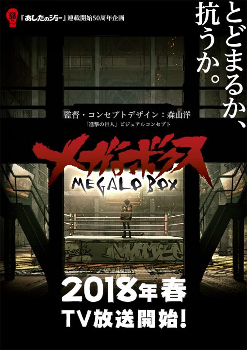 Megalo Box ออริจินอลทีวีอนิเมะที่ถูกสร้างขึ้นเพื่อฉลองครบรอบ 50 ปีของมังงะเรื่อง โจ สิงห์สังเวียน โดยมีกำหนดฉายภายในช่วงฤดูใบไม้ผลิปี 2018 นี้ ผลิตโดยสตูดิโอ TMS Entertainment