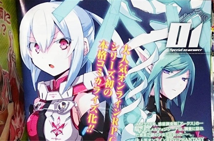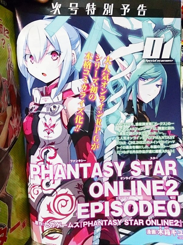 นิตยสาร Shōnen Ace magazine ของ Kadokawa ฉบับเดือนมีนาคมจะมีมังงะใหม่ที่มีต้นแบบจากเกมส์ Phantasy Star Online 2 ซึ่งมีชื่อว่า "Phantasy Star Online 2 Episode 0" จะออกในเดือนกุมภาพันธ์ และได้ Kiyu Kibako มาเป็นผู้วาดมังงะ