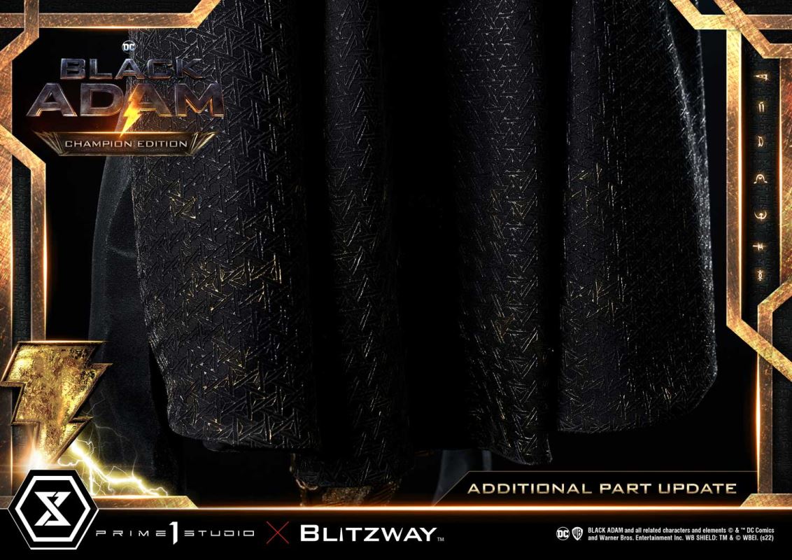 ส่วนแรก จะมีการเปลี่ยนรูปแบบของผ้าคลุมที่เดิมจะเป็นผ้าคลุมแบบมีฮู๊ดคลุมหัว Black Adam แต่ในเวอร์ชั่นที่อัพเดทจะเปลี่ยนเป็นผ้าคลุมที่ไม่มีฮู๊ดแทน เพื่อให้เห็นรายละเอียดส่วนหัวของ Black Adam อย่างชัดเจนมากยิ่งขึ้น