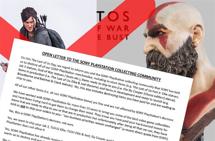 Gaming Heads หนึ่งในบริษัทที่ร่วมมือกับ Sony ในการนำตัวละครจากเกมดังต่าง ๆ ที่ลงในเครื่องเกม PlayStation มาผลิตเป็นฟิกเกอร์ ไม่ว่าจะเป็นตัวละครจากเกม The Last of Us, Jak and Daxter, Sly Cooper และ God of War เป็นต้น ซึ่งบริษัท Gaming Head เองก็ได้ผลิตฟิกเกอร์ต้นแบบและเปิดรับจองตัวสินค้าต่าง ๆ ไปแล้ว แต่ล่าสุด ช่วงเดือนกันยายนที่ผ่านมา ทาง Gaming Heads ได้ออกมาแจ้งข่าวว่า Sony ประกาศให้ทางบริษัท Gaming Heads ทำลายฟิกเกอร์ต่าง ๆ ที่มีอยู่ในสต๊อกออกไปทั้งหมดและหยุดการผลิตเพิ่มในอนาคต
