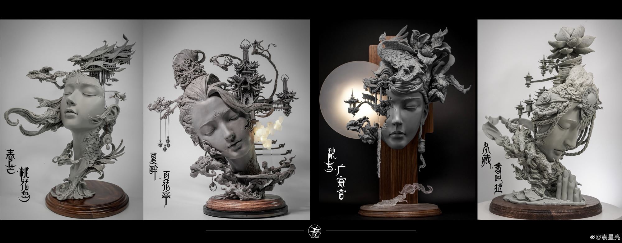 เสร็จสมบูรณ์แล้ว กับงานปั้นซีรีย์ Pavilion ชิ้นที่ 4 ของ "หยวน ซิงเหลียง" (Yuan Xingliang) นักปั้นชาวจีนที่เราเคยเห็นงานปั้นสไตล์นี้ของเขามาแล้ว 3 ชิ้นด้วยกัน โดยผลงานล่าสุดชิ้นนี้ หยวนใช้ชื่องานปั้นว่า "Summer Drunk · Hundred Flowers Pavilion" ซึ่งใช้คอนเซ็ปต์ของนางสนมขี้เมาที่มีพื้นหลังที่เล่าเรื่องราวถึงความเจริญรุ่งเรืองในสมัยราชวงศ์ถัง