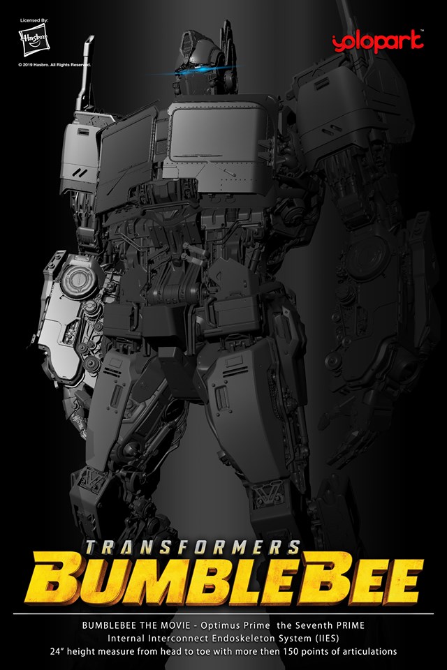 Yolopark ได้ปล่อยภาพต้นแบบของสินค้า Optimus Prime ซึ่งเป็นหุ่นที่ทำจากดีไซน์ของภาพยนต์ BUMBLEBEE THE MOVIE โดยหุ่นตัวนี้จะมีความสูง 24 นิ้ว และถูกออกแบบโครงสร้างภายในด้วยกลไกล Internal Interconnect Endoskeleton System (IIES) ซึ่งทางผู้ผลิตบรรยายถึงกลไกนี้ว่า เป็นการออกแบบโครงสร้างของภายในหุ่นที่สามารถขยับเกียร์ของหุ่นได้แบบอิสระ โดยเกียร์เหล่านี้จะเชื่อมต่อกันเหมือนกับเครื่องจักรจริง ๆ