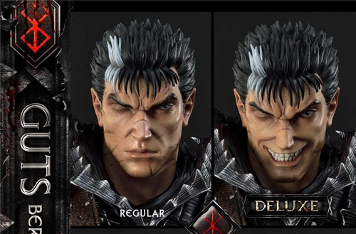 In addition to Guts’ standard portrait, the Deluxe Version Guts comes with three other swappable heads, to give him the flexibility of expression: from sneering confidence to outright malice! And most especially, we have included a rare, one-of-a-kind Guts portrait, drawn by Miura-Sensei, gifted to us, and sculpted by Prime 1 Studio artists with the utmost reverence and care. This unique, exclusive Miura-Sensei swappable head can be yours with the purchase of the Deluxe Version!